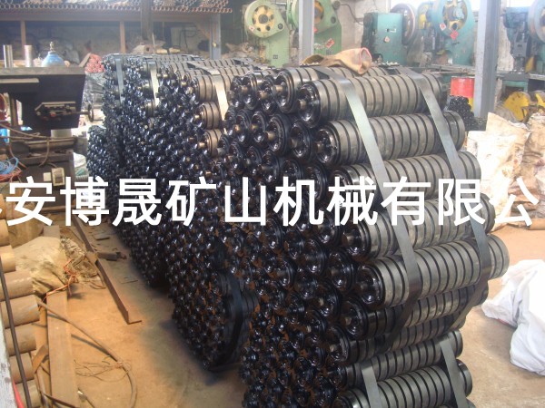 緩沖托輥(impact idler),緩沖托輥用于帶式輸送機(jī)受料處減緩落料對輸送帶的沖擊,主要針對洗煤廠、焦化廠、化工廠等腐蝕性環(huán)境而研制的一類托輥,它本身具有的韌性是普通金屬的10倍以上,壽命為傳統(tǒng)柱鞋的五倍,耐腐蝕阻燃,抗靜電,自重輕等特點(diǎn),廣泛用于礦山開采。托輥輥體專用的高分子材料,其機(jī)械性能類似于青銅,具有很好的耐磨性,而且具有良好的自潤滑性能,不傷皮帶。 緩沖托輥防腐性能優(yōu)越。輥體及密封